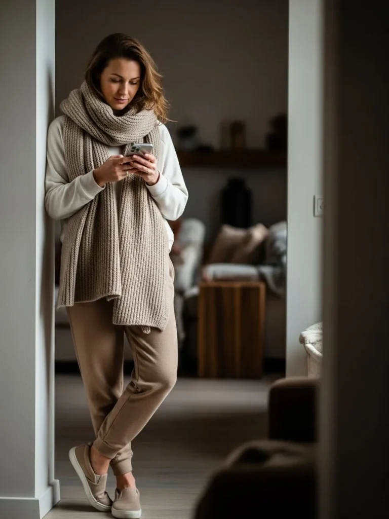 Cozy Neutral Scarf and Soft Joggers for All Day Warmth