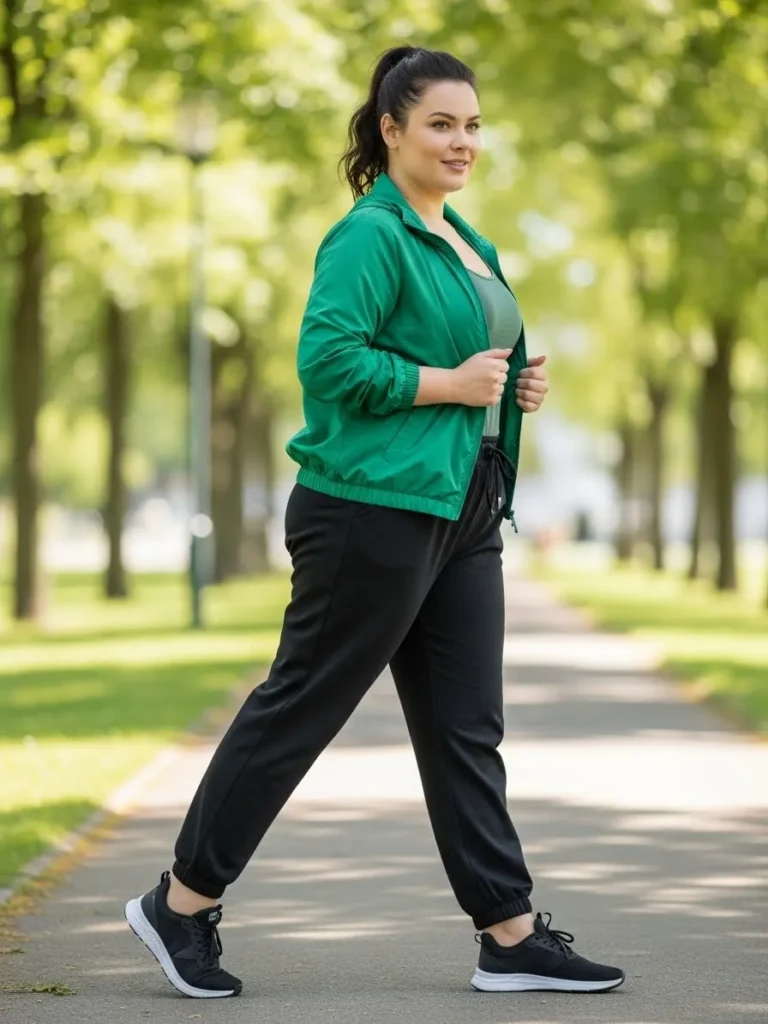 I love how this look finds that sweet spot between sporty and cute. The joggers move so easily and the green jacket adds personality without feeling loud. It is the kind of outfit I reach for when I want to stay comfortable but still feel like I made a bit of an effort.